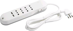 BTICINO CIABATTA MULTIPRESA ELETTRICA SLIM 4 PRESE BIPASSO 10/16A + 2 PRESE USB-A 2,4A CON INTERRUTTORE LATERALE E CAVO 1.5 MT SPINA ITA ANGOLATA BIANCO