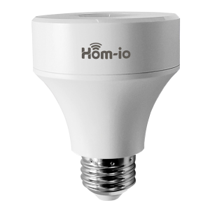 Adattatore E27 smart WiFi hom-io, grazie a questo adattatore si ha la possibilità di trasformare una lampadina tradizionale in WiFi comandabile tramite la app Hom-io e compatibile con tutte le automazioni e gli scenari che la soluzione mette a disposizione. Compatibile con gli assistenti vocali Amazon Alexa e Google Home.