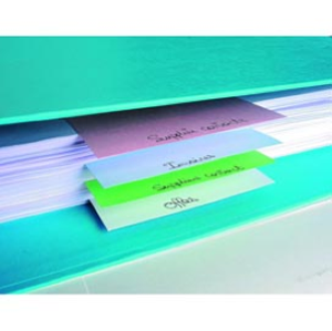Divisori orizzontali in cartoncino riciclato (certificazione Blue Angel) da 180 gr. Dotati di 2 fori e forniti in 4 colori assortiti. Formato: 10,5x24 cm.
