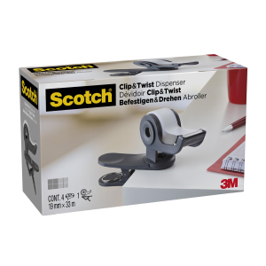 DP-90105 7100212799 Dispenser Clip Twist per nastro adesivo - grigio - 4 rotoli inclusi da 19 mm x 33 mt - Scotch Magic