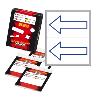 Etichette adesive - in carta - permanenti - 115 x 70 mm - 2 et/fg - 10 fogli - simbolo freccia blu (alto) - bianco - Markin