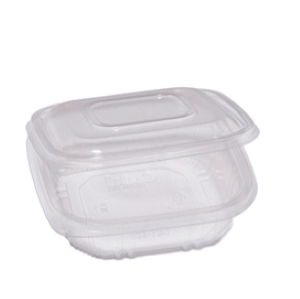 Contenitori in PP con coperchio incernierato. Ideale per cibi caldi, riscaldamento in microonde e conservazione in frigo e freezer.