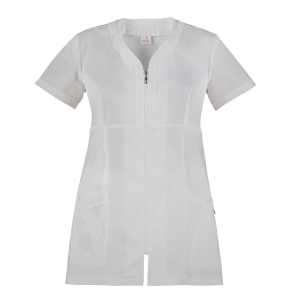 Casacca 100% in cotone. A maniche corte, con chiusura centrale con zip rovesciata e 2 tasche latarali. Ideale per il settore beauty e cleaning. Taglie disponibili: da XS - 4XL. Slim Fit.