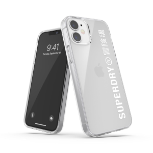SUPERDRY APPLE iPHONE 12 MINI COVER IN TPU CHIUSURA A SCATTO LOGO SUPEDRY STAMPATO BIANCO